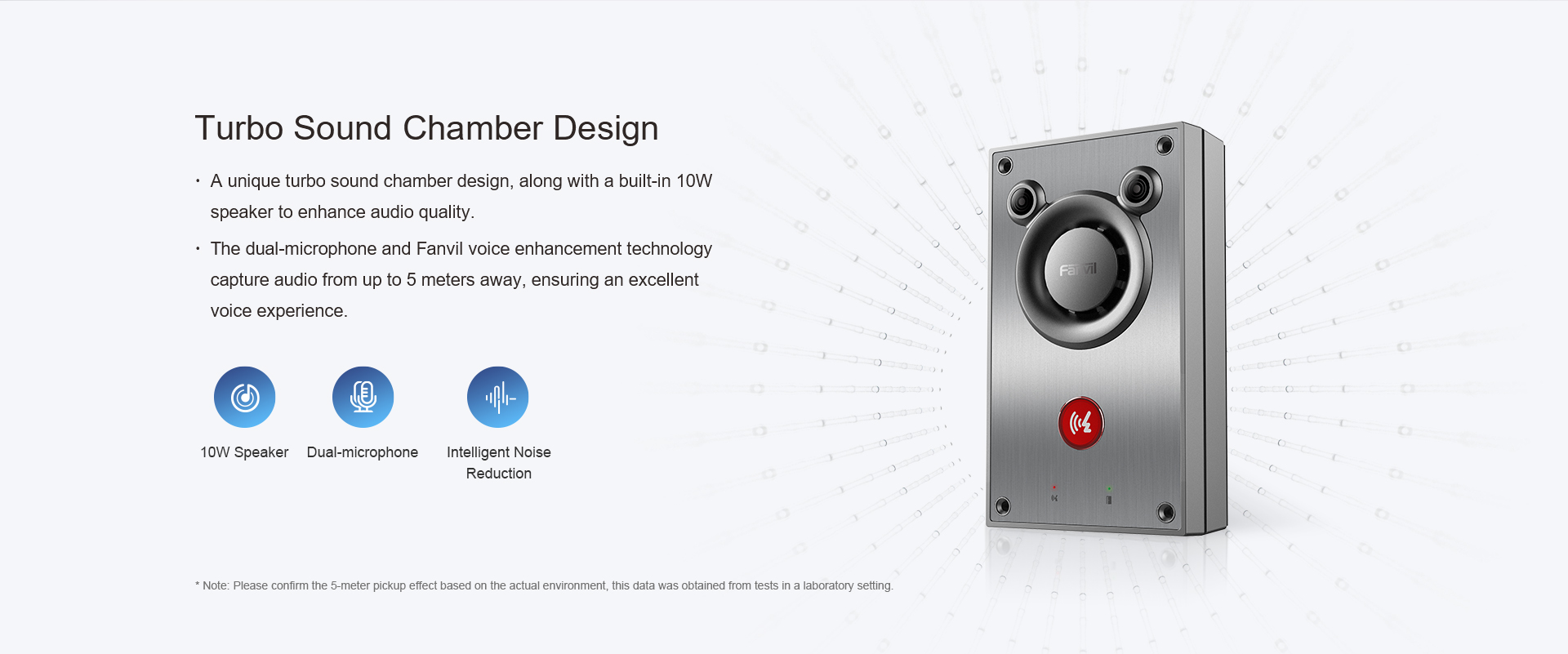 El intercomunicador de audio Fanvil A12 es un dispositivo completamente nuevo que cuenta con un altavoz incorporado de 10 W y un diseño único de cámara de sonido turbo, que ofrece un rendimiento de audio impresionante. Utiliza la avanzada tecnología de reducción de ruido de doble micrófono de Fanvil y algoritmos de mejora de voz, lo que garantiza una captura de audio clara incluso en entornos ruidosos. Además, combina un panel de acero inoxidable con una estructura de aleación de aluminio integrada, lo que lo hace no solo estéticamente agradable, sino también resistente a la corrosión y adecuado para diversos entornos hostiles.