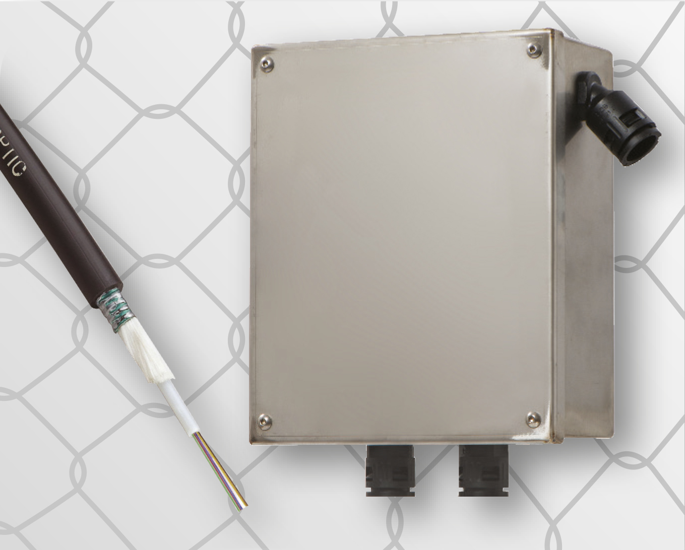 Sistema de fibra óptica IP con alta inmunidad a perturbaciones electromagnéticas y sobretensiones en el campo para cercas rígidas y de malla.