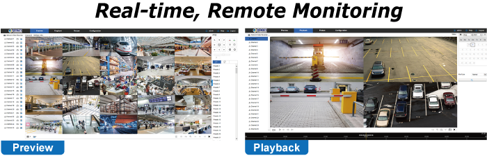 El NVR-2516P viene con interfaces de salida de video HDMI y VGA para pantalla local dual. Se puede conectar a un monitor HDMI 4K y a un monitor VGA 1080P por separado, donde los contenidos de visualización en directo o los contenidos de reproducción se pueden mostrar simultáneamente. Con la función de pantalla local dual, los usuarios pueden monitorear localmente con alta flexibilidad en una resolución de pantalla diferente, eliminando así la necesidad de una PC separada para ver video desde la unidad. Además, el NVR también se puede operar con el mouse USB para configurar y monitorear todos los sistemas fácilmente.