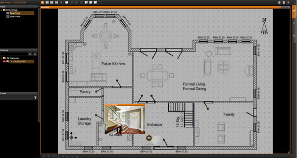 La función eMap ayuda a visualizar la disposición de las cámaras IP en la red de vigilancia, lo que le permite identificar rápidamente la ubicación de cada cámara IP, especialmente cuando se produce una alarma. Simplemente cargue las imágenes de las ubicaciones de monitoreo y arrastre y suelte los íconos de la cámara IP en el lugar correcto en el eMap. Una vez que se produce un evento de alarma, los íconos de la cámara parpadearán para indicar el tipo de evento para que reciba una alerta de inmediato y tome las medidas necesarias.