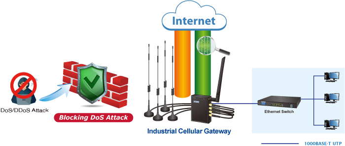 El ICG-2210W-NR tiene un firewall SPI (inspección de paquetes con estado) incorporado y funciones de mitigación de ataques DoS/DDoS para brindar alta eficiencia y amplia protección para su red. Por lo tanto, las funciones de servidor virtual y DMZ pueden permitirle configurar servidores en la Intranet y seguir brindando servicios a los usuarios de Internet.