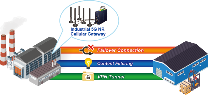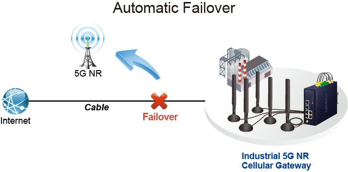 Con 5G NR e interfaces WAN duales Gigabyte Ethernet, el LCG-300-NR garantiza la conectividad a Internet al presentar una funcionalidad de conmutación por error entre 5G NR y WAN dual. Proporciona flexibilidad para establecer la prioridad para la conexión 5G NR o WAN dual. Cuando falla la interfaz WAN principal, la interfaz WAN secundaria respaldará automáticamente la conexión para garantizar una conectividad siempre activa.
