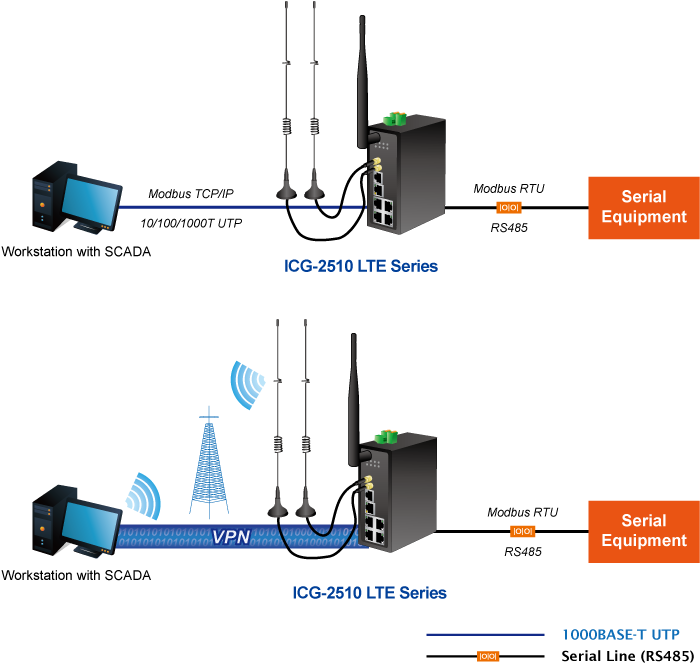 La interfaz de comunicación serial RS232/RS485 de PLANET ICG-2510WG-LTE se puede convertir a través de la red Fast Ethernet. Puede funcionar como un servidor o cliente virtual donde se pueden gestionar equipos seriales basados ​​en IP. El ICG-2510WG-LTE ayuda a ahorrar el valioso tiempo del administrador de red en la detección y localización de problemas de red, en lugar de realizar una inspección visual del cableado y los equipos.
