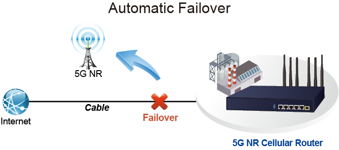 Diseñado con 5G NR, interfaces WAN duales (fibra y cobre), 1000X SFP y Gigabyte Ethernet, el VR-300FW-NR garantiza la conectividad a Internet al presentar una funcionalidad de conmutación por error entre 5G NR y WAN dual. Proporciona flexibilidad para establecer la prioridad para la conexión 5G NR o WAN dual. Cuando falla la interfaz WAN principal, la interfaz WAN secundaria respaldará automáticamente la conexión para garantizar una conectividad permanente.