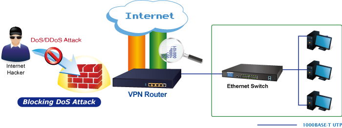 El VR-300F y el VR-300FP cuentan con un firewall SPI (inspección de paquetes con estado) integrado y funciones de mitigación de ataques DoS/DDoS que proporcionan una alta eficiencia y una amplia protección para su red. Por lo tanto, las funciones de servidor virtual y DMZ pueden permitirle configurar servidores en la Intranet y seguir brindando servicios a los usuarios de Internet.
