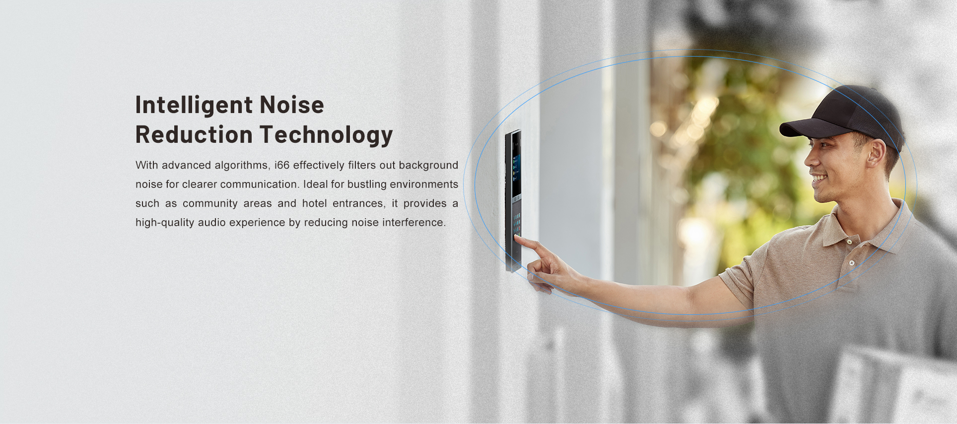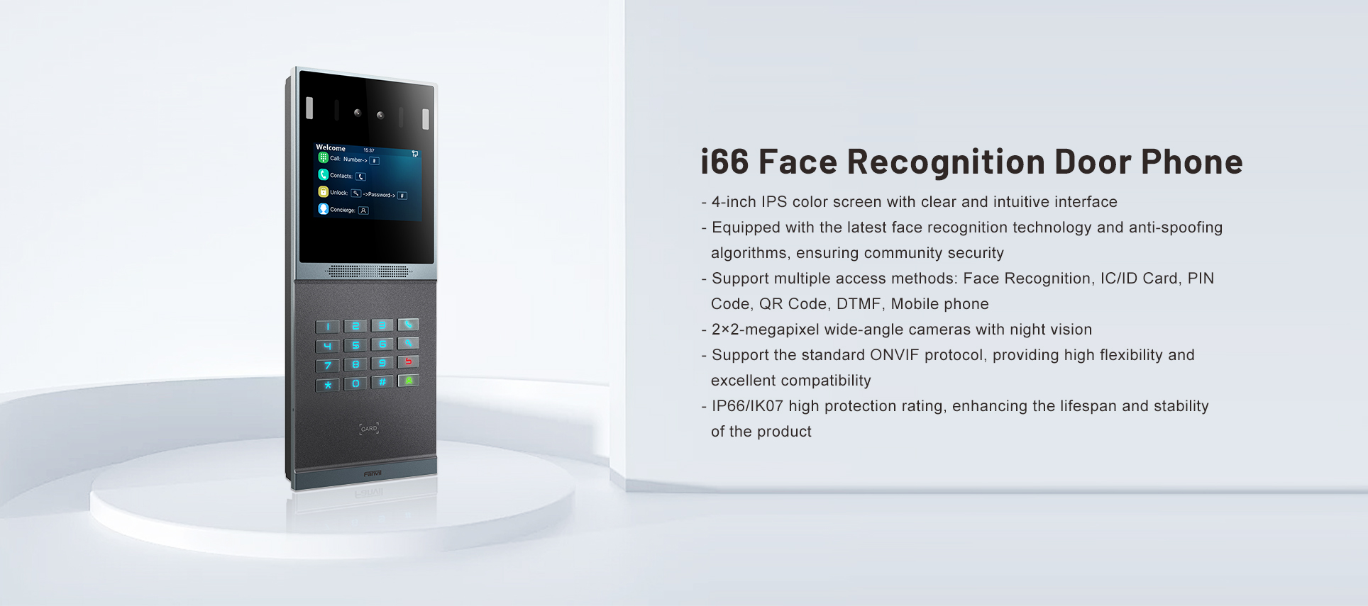 El portero automático con reconocimiento facial i66 está equipado con una pantalla a color IPS de 4 pulgadas e incorpora tecnología de reconocimiento facial de alta precisión.